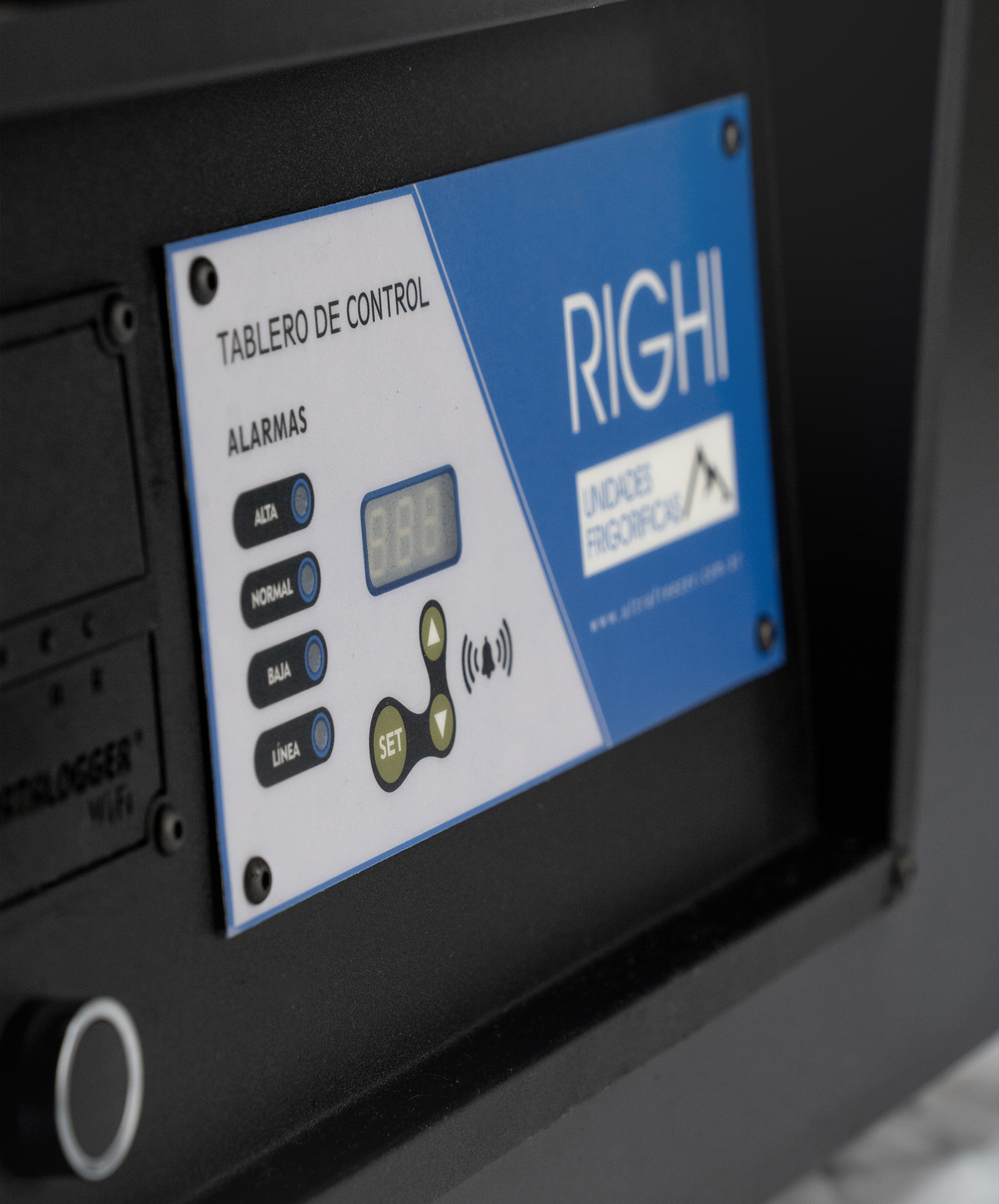 Alarmas visuales de led y sonoras alimentadas con batería por falta de tensión y/o alta o baja temperatura con silenciador. Instrumentación de protección frigorífica. Motocompresor hermético (con sistema de blindado)